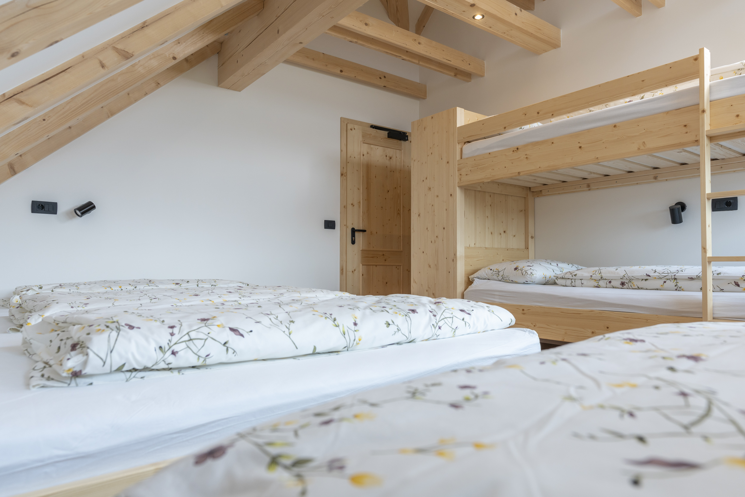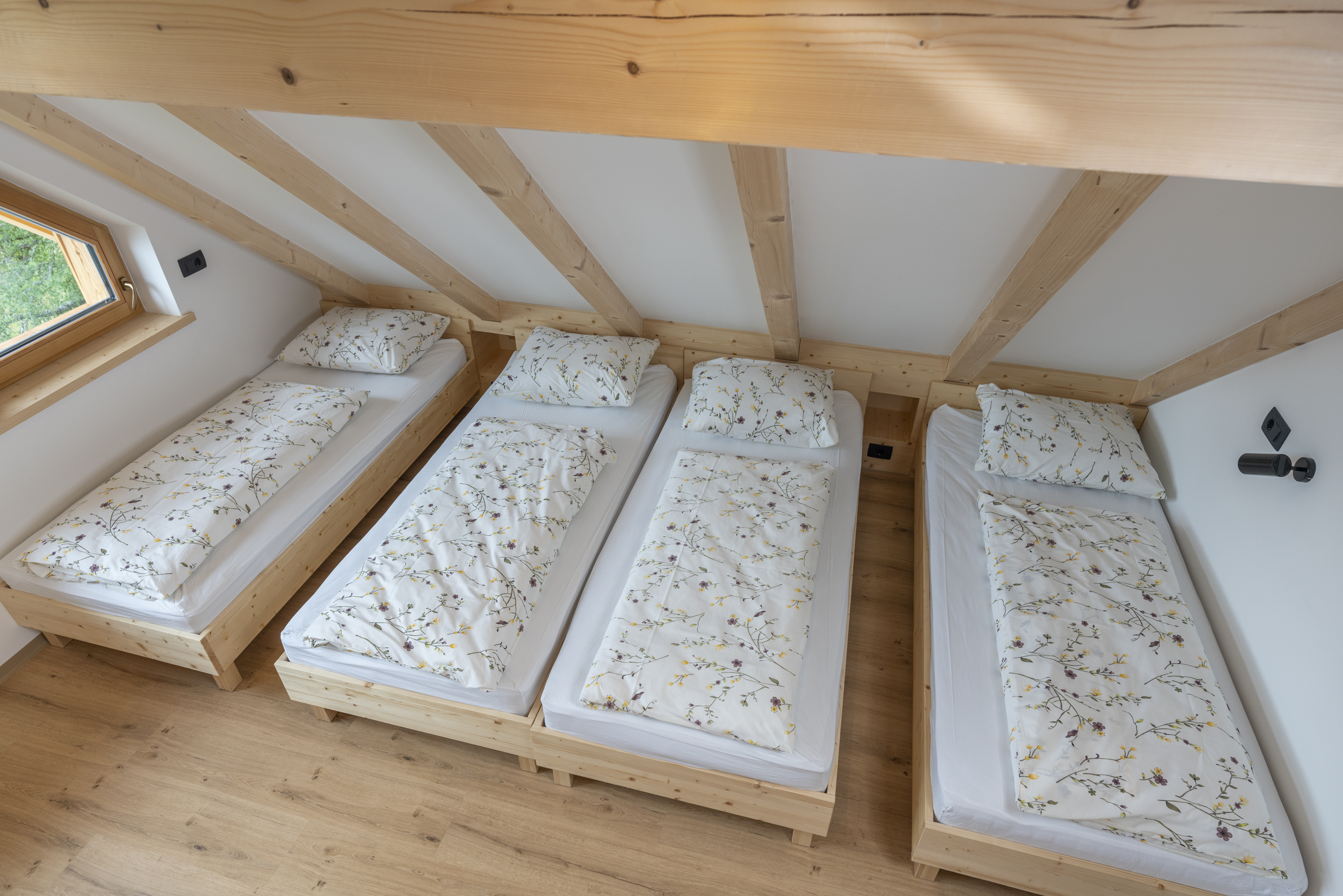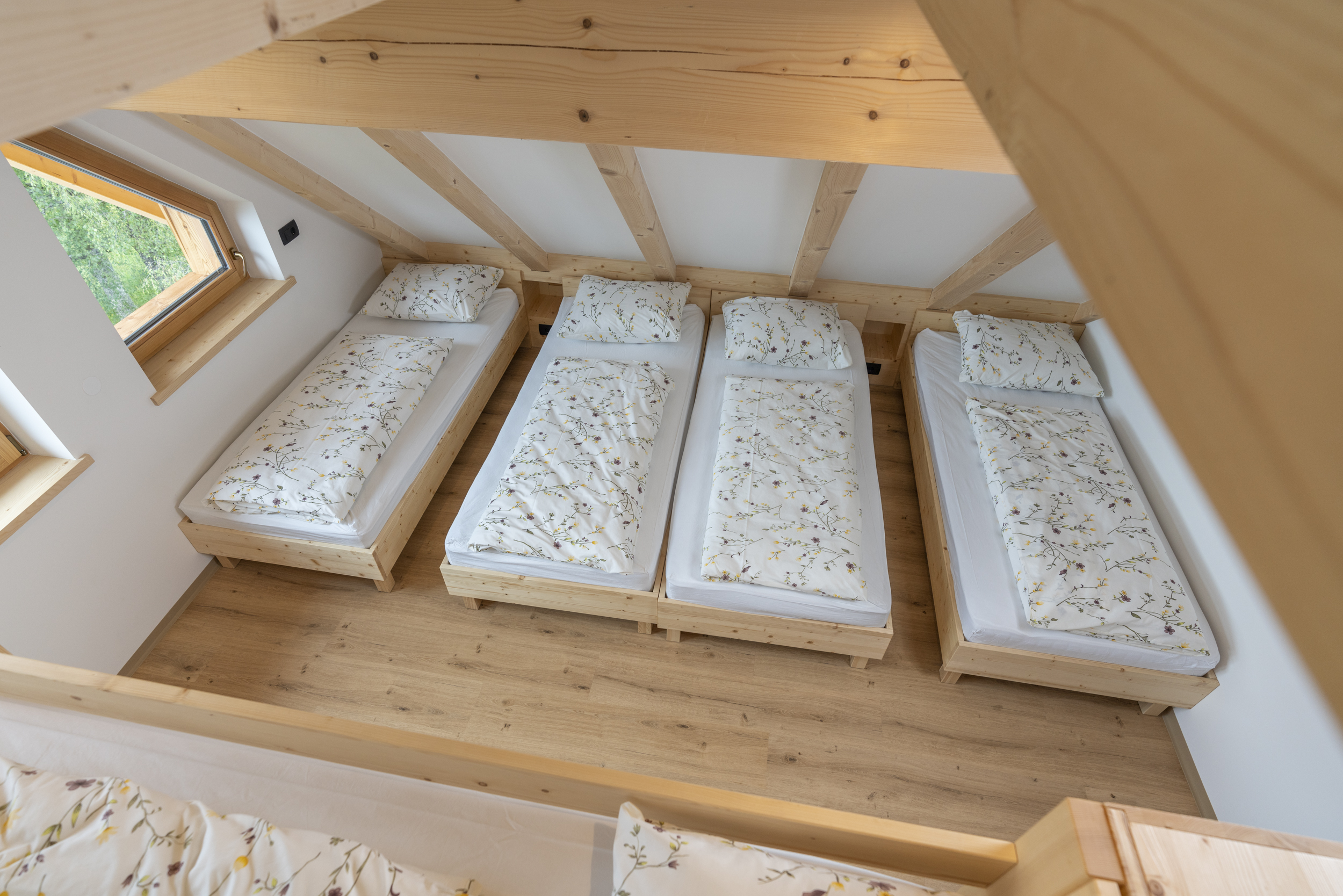 | Vrsta postelj: | 4 posamične postelje, 1 pograd in izvlečno ležišče |
